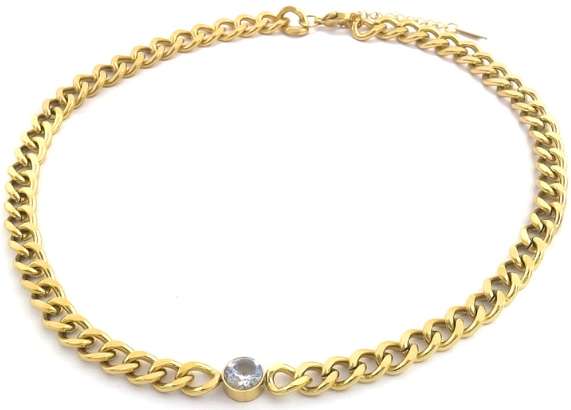 A-A18.2 N088-062G S. Steel Necklace 39-44cm White CZ