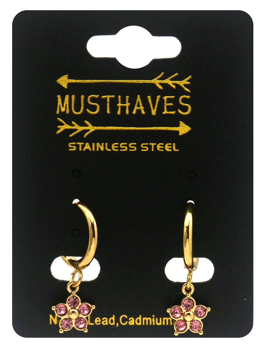 A-F18.4 E2612-208G-1 S. Steel Earrings Crystal Flower 2.5x1.2cm Pink