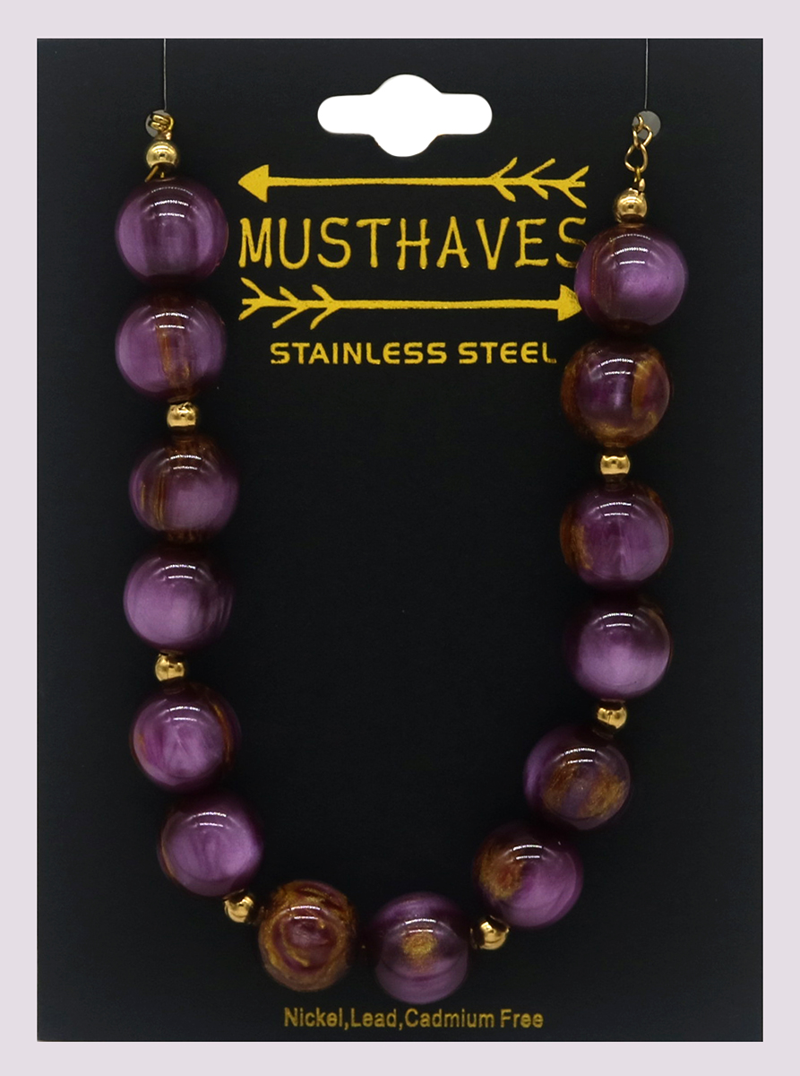Introducing the B-A22.3 B1144-004-3 Stainless Steel Bracelet adorned with exquisite acrylic beads in a stunning shade of purple. This elegant piece combines durability and style, featuring a robust stainless steel construction that ensures longevity while maintaining a sleek appearance. The vibrant purple acrylic beads add a pop of colour, making it a perfect accessory for any outfit, whether casual or formal.