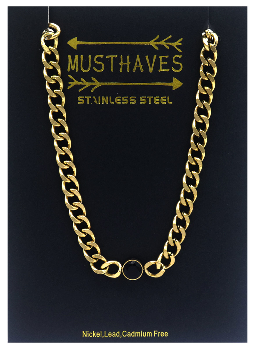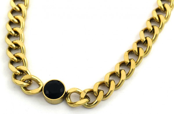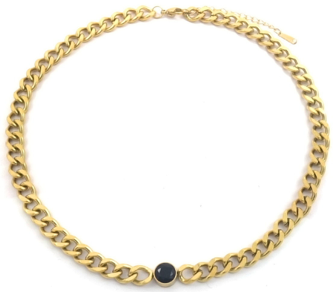 B-B17.4 N088-062G S. Steel Necklace 39-44cm Black CZ