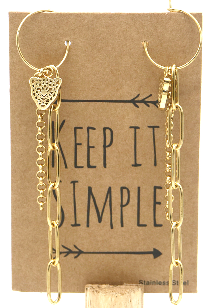 B-B18.5 E2003-007G. S. Steel Earrings Leopard 7x2cm