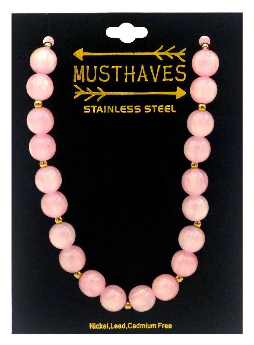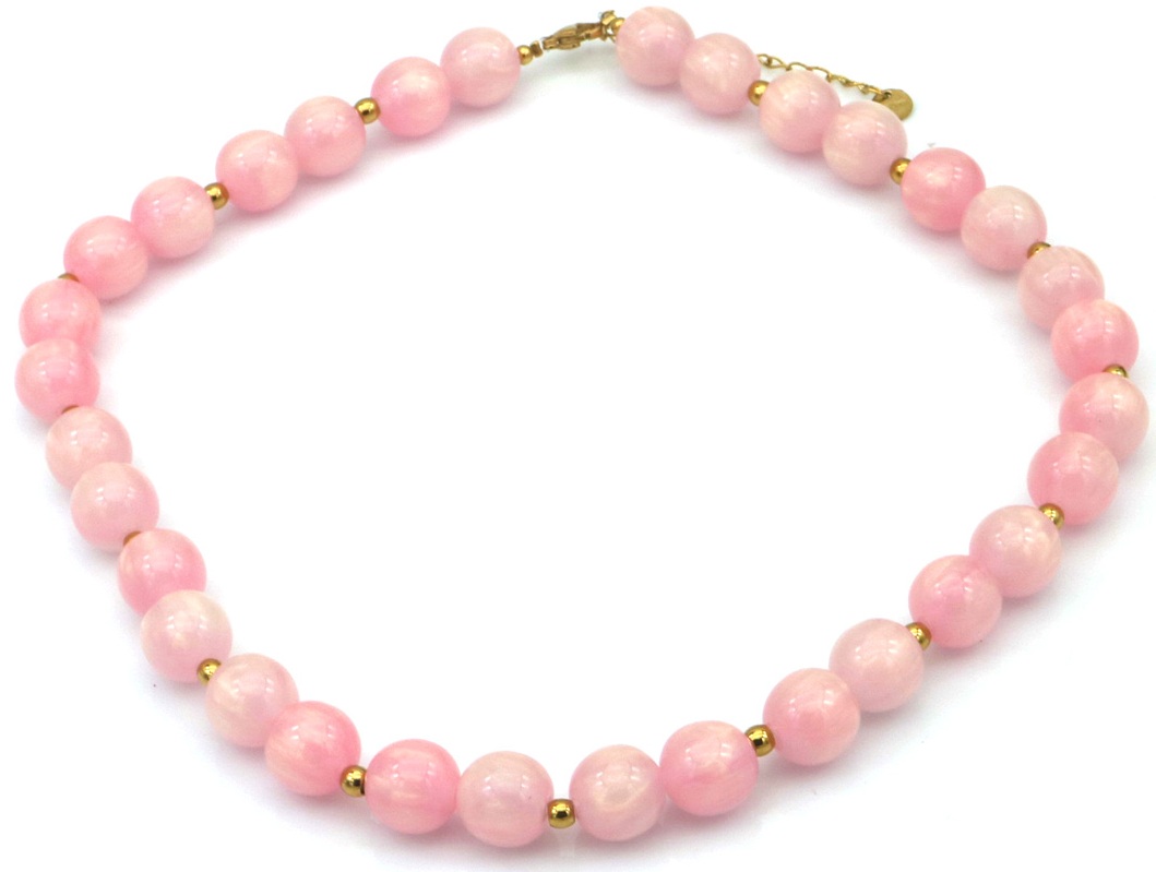 B-C13.1 N1144-008-6 S. Steel Necklace 10mm Beads 40-45cm Pink