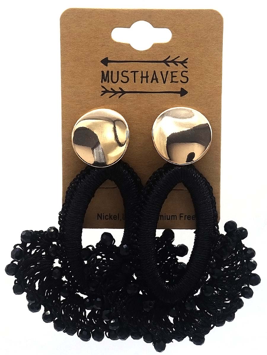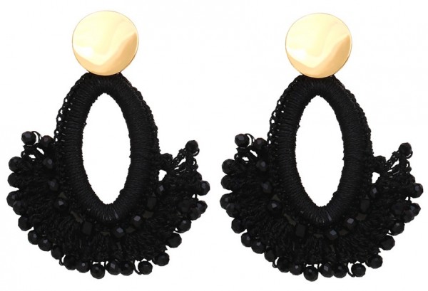 B-D22.3 E1668-001 No. 3 Earrings Glassbeads 7cm Black