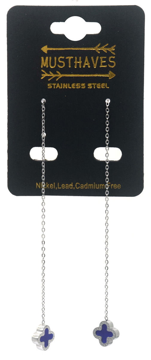 B-D5.5 E089-004S S. Steel Pull Through Earrings Blue