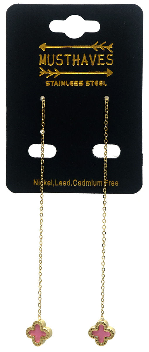 B-E19.5 E089-004G S. Steel Pull Through Earrings Pink