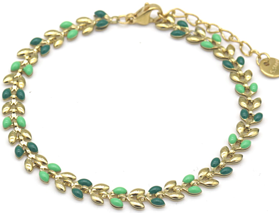 Product information "B-F17.3 B835-034G S. Steel Bracelet Leaves Green"