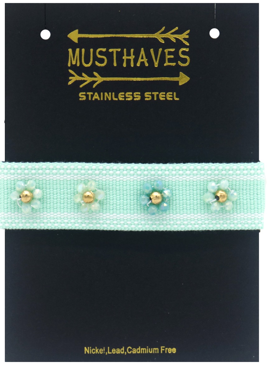 E-B22.2 B089-030G S. Steel Bracelet Clovers Crystals