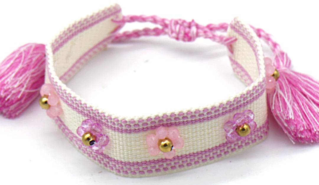 B-F21.3 B831-007-7 Rope Bracelet with S. Steel Beads Purple