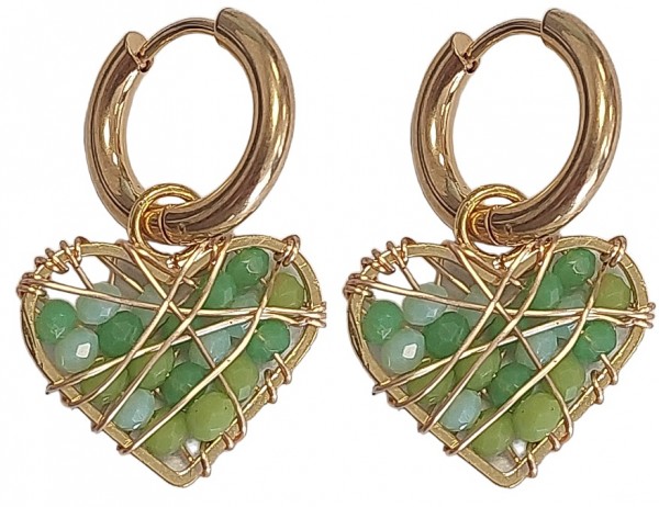 Product information "B-F6.1 E626-001G S. Steel Earrings Heart 1.2x3cm Green"