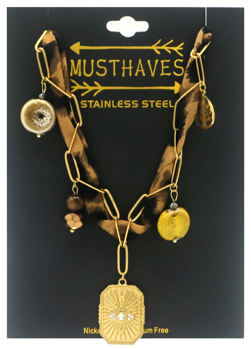 Product information "C-A22.3 N098-005 S. Steel Necklace Loopard Fabric with Charms"