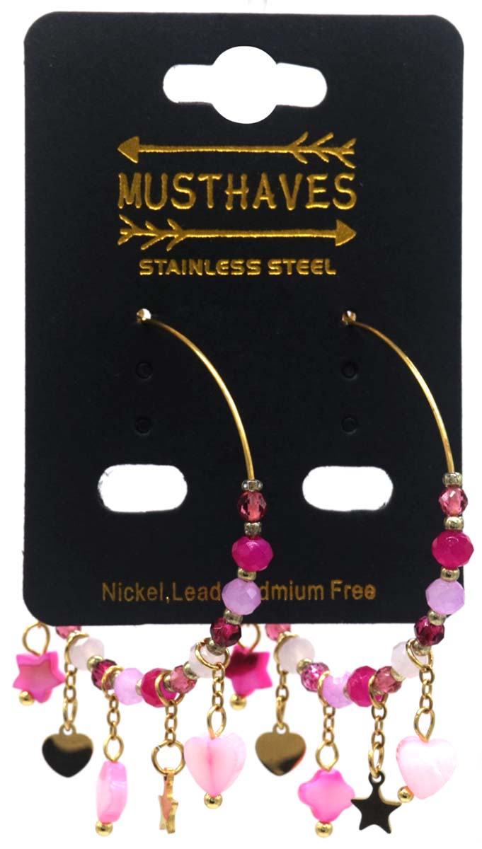 C-B19.5 E221-498 No. 11 S. Steel Glassbead Earrings 4x5.5cm
