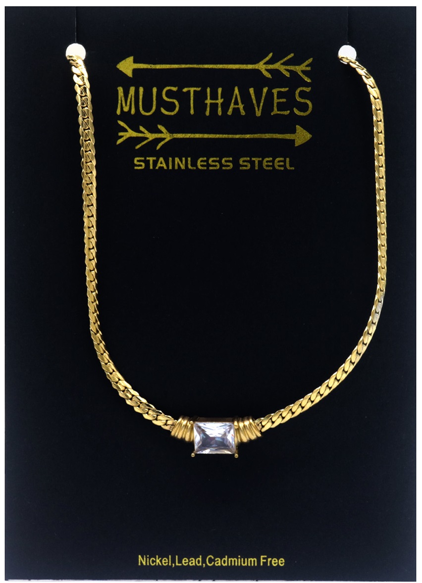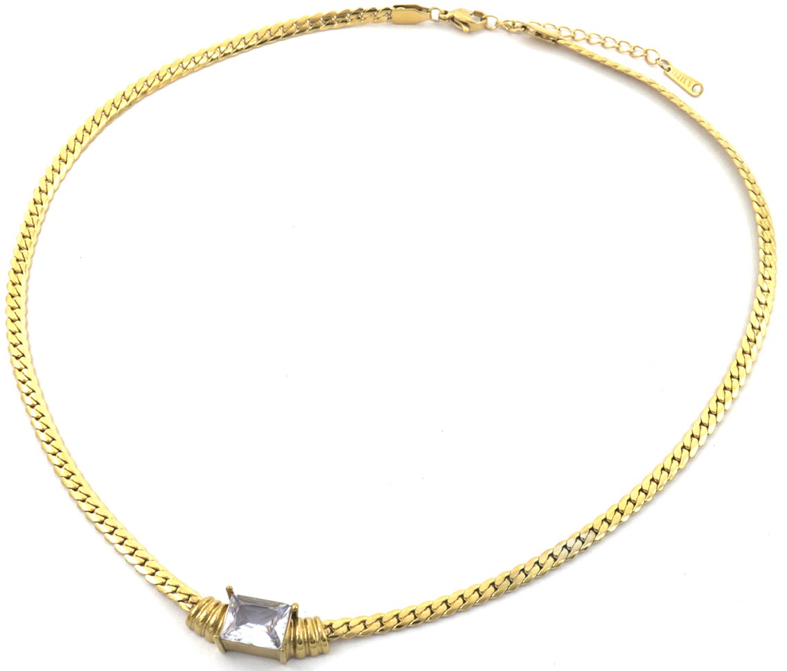 C-B3.1 N089-016G S. Steel Necklace CZ
