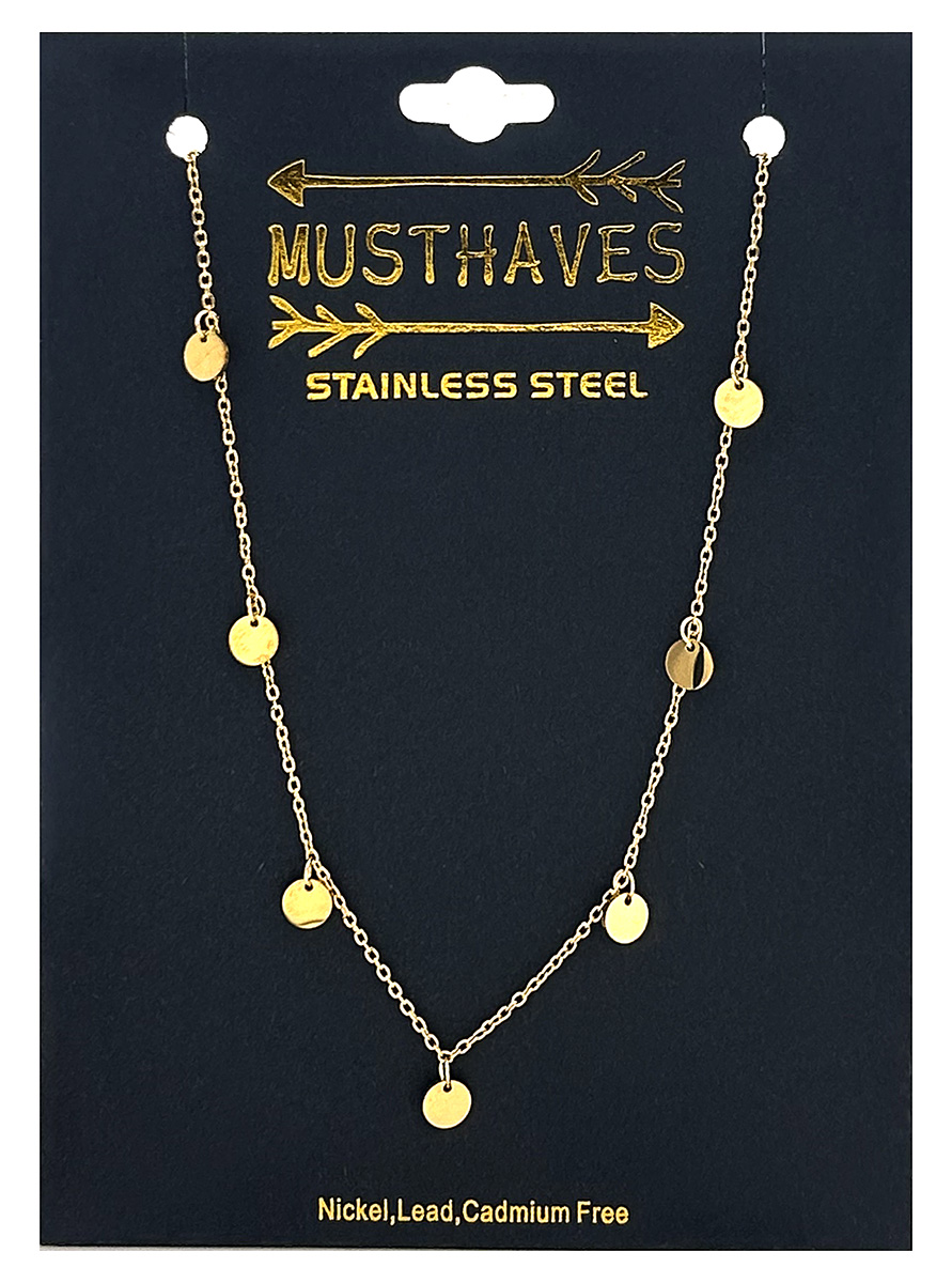 Introducing the C-C19.2 N1131-005G Stainless Steel Necklace Coins, a stunning accessory that effortlessly combines elegance and contemporary style. Crafted from high-quality stainless steel, this necklace features a unique design of interlinked coins that adds a touch of sophistication to any outfit.