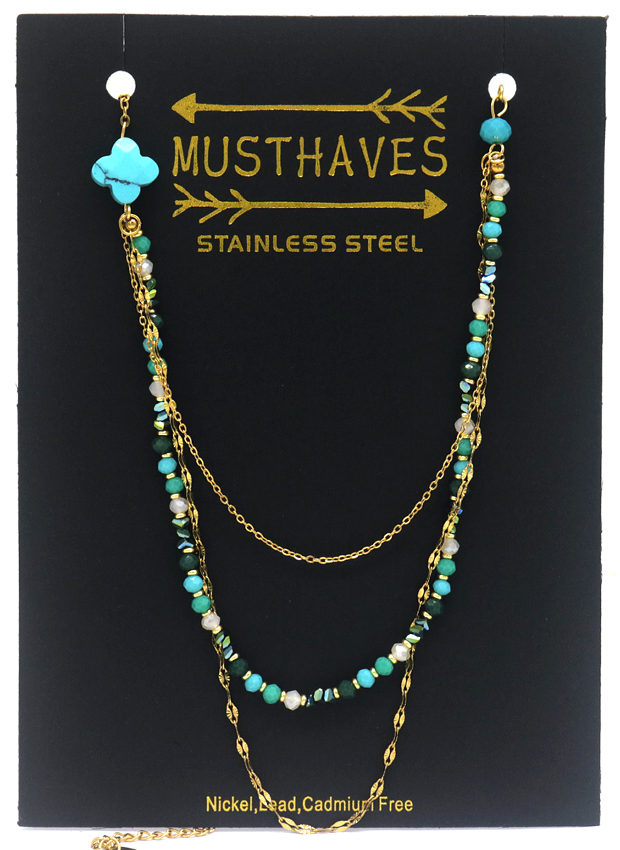 C-C22.3 N221-363 No. 3 S. Steel Necklace Layered Blue
