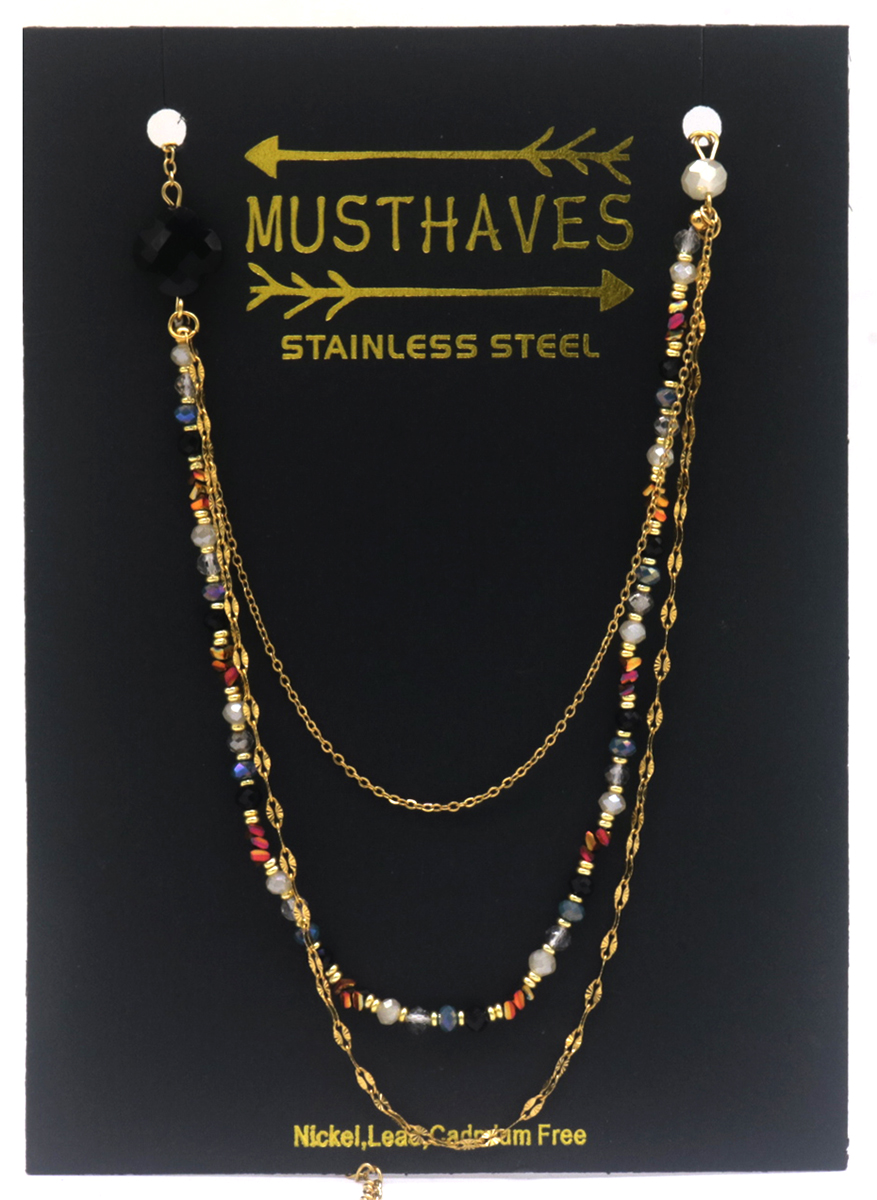 C-C9.1 N221-363 S. Steel Necklace — Layered Black