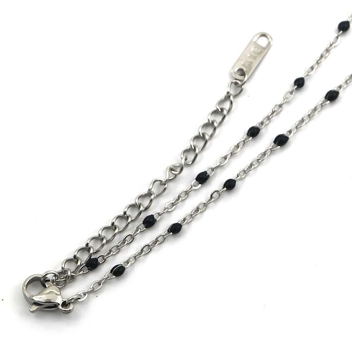 C-E5.5 N064-006S S. Steel Necklace Dots 40-45cm Black