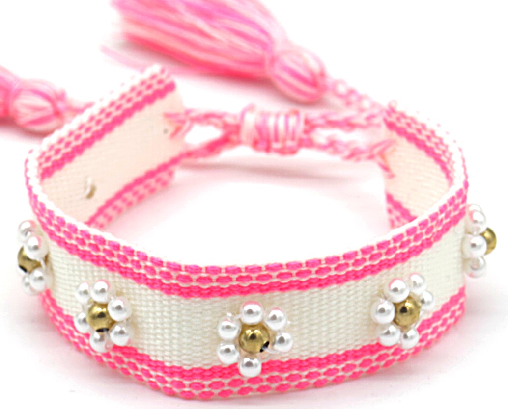 C-F21.1 B831-007-1 Rope Bracelet with S. Steel Beads Pink