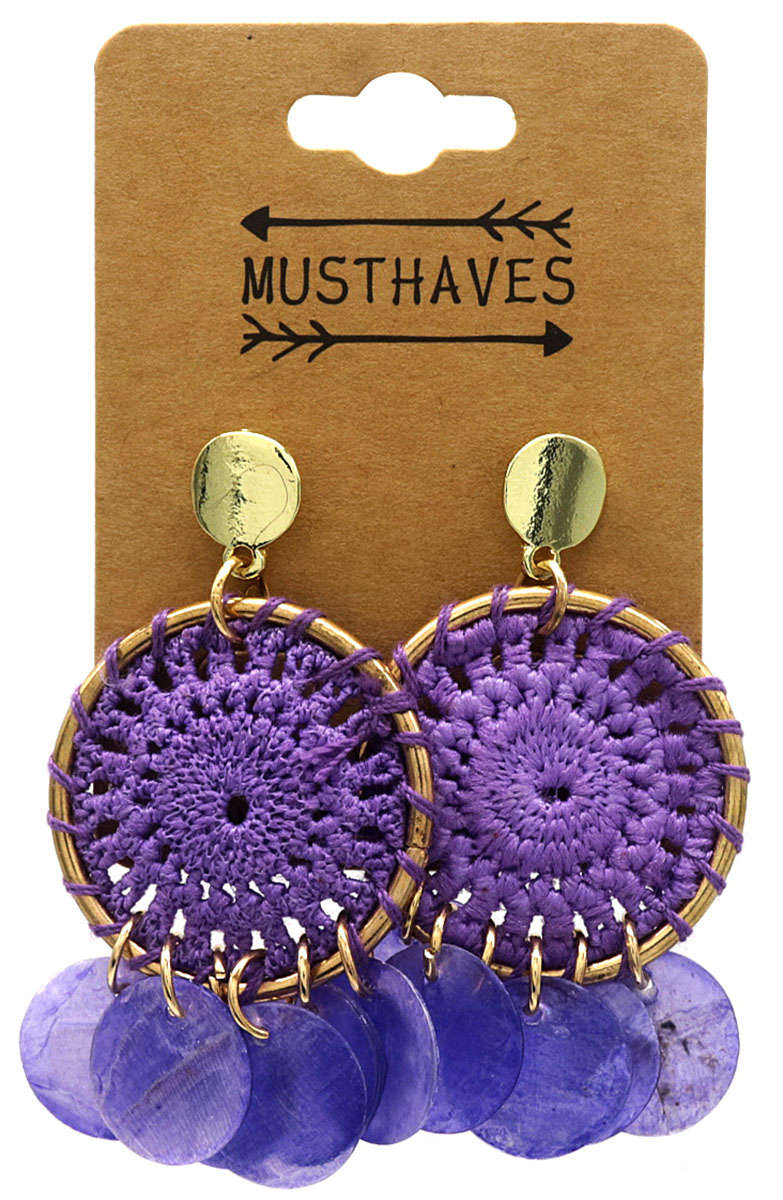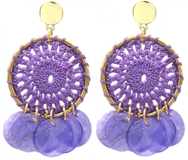 D-A3.2 E536-121 Earrings Woven 5.5x3cm Purple