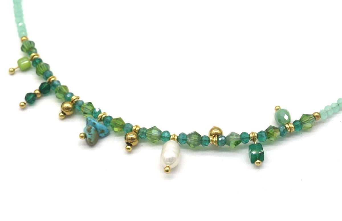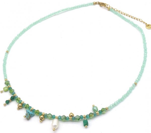 Product information "D-B21.2 N221-327 S. Steel Necklace Glassbeads Blue 39-44cm"