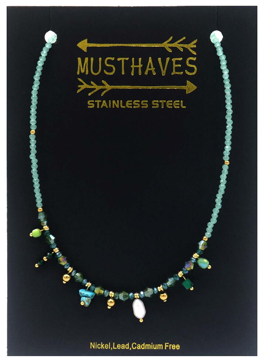 D-B21.2 N221-327 S. Steel Necklace Glassbeads Blue 39-44cm
