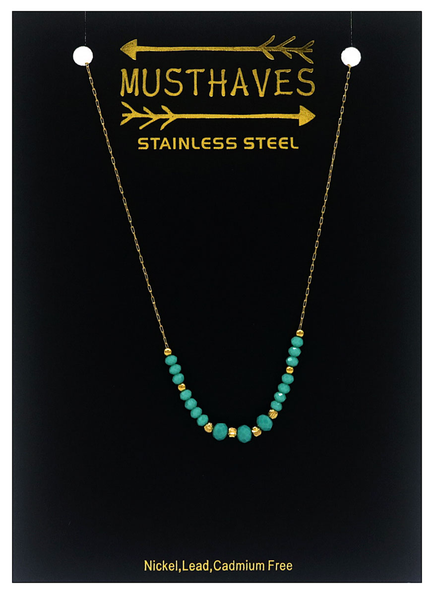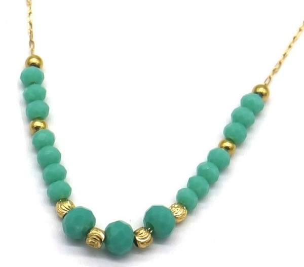 D-C5.2 N623-001D S. Steel Necklace Glass 39-44cm Blue