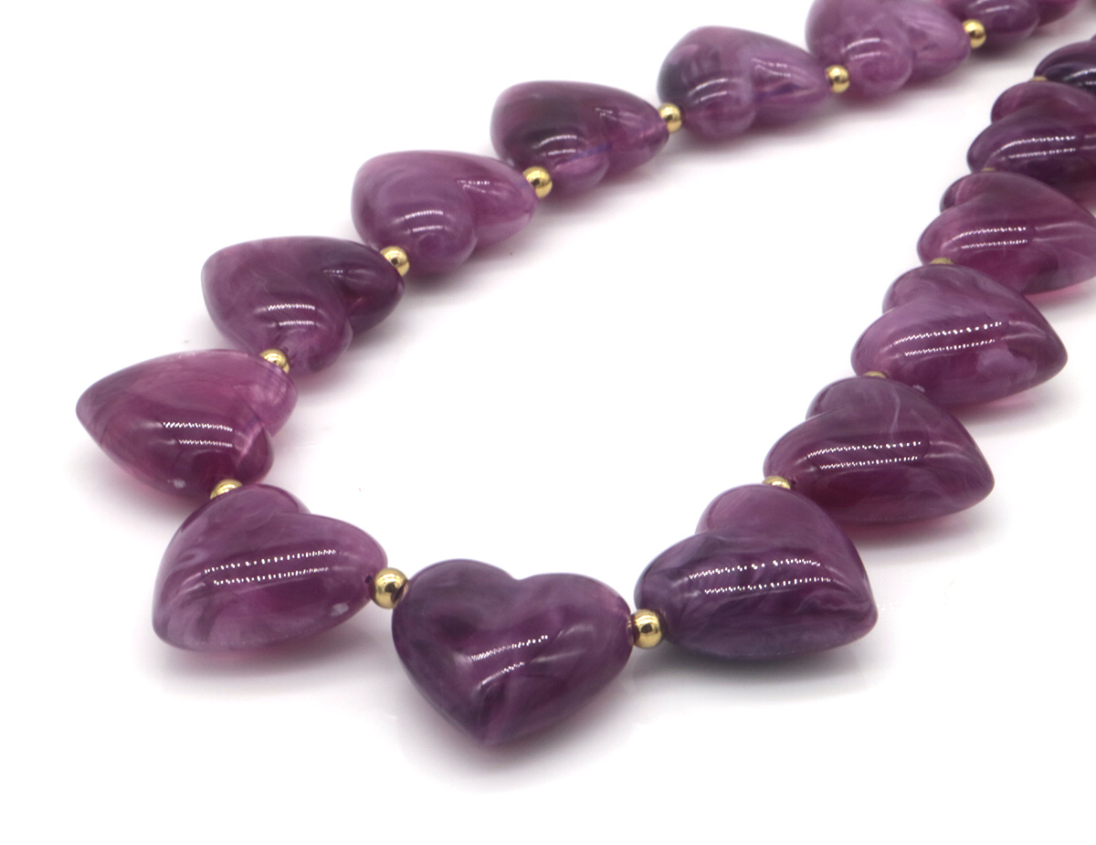 D-D14.1 N2582-002-6 S. Steel Necklace 40-45 cm Acrylic Hearts Purple