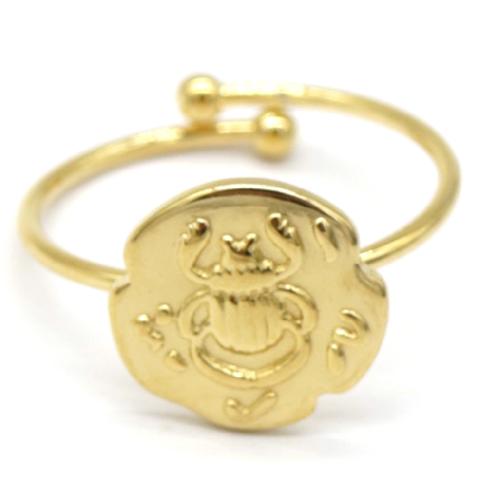 Introducing the D-D16.2 R031-011G Stainless Steel Ring Scarabee Adjustable – a stunning piece of jewellery that effortlessly combines elegance and versatility. Crafted from high-quality stainless steel, this ring features a unique scarab beetle design, symbolising transformation and protection.