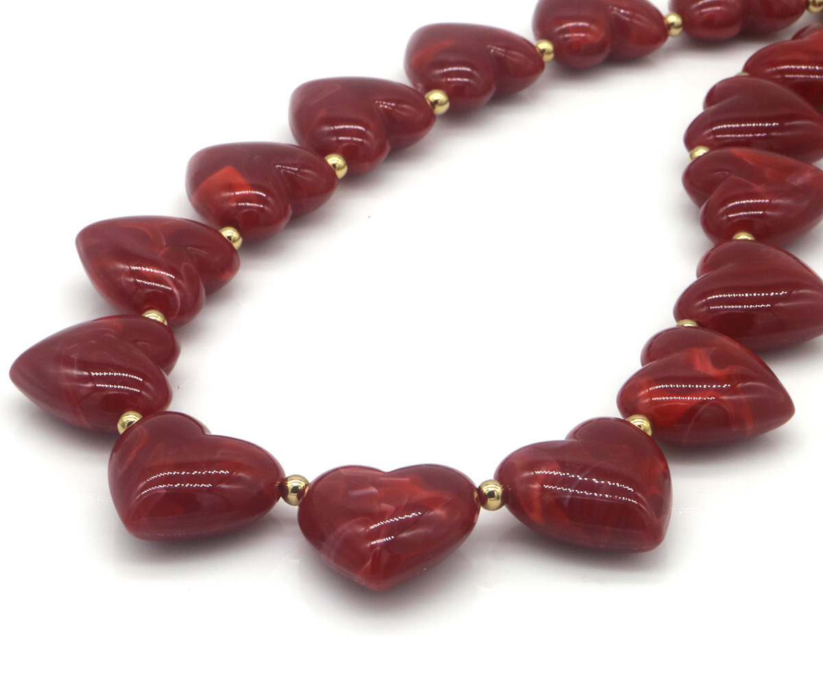 Adorned with beautiful acrylic hearts in a rich bordeaux hue, this necklace adds a touch of sophistication and warmth to any outfit. The stainless steel construction guarantees durability and a lustrous finish, making it suitable for everyday wear or special occasions.