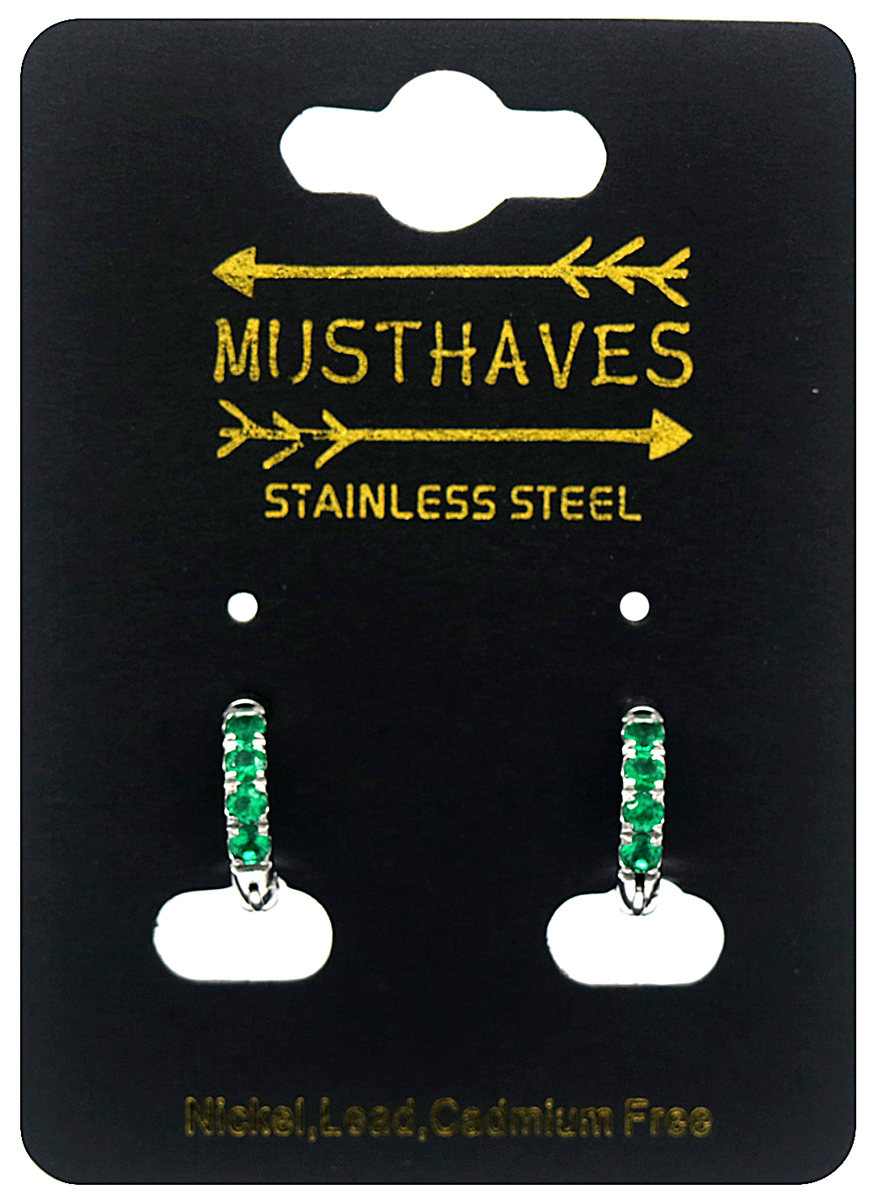 D-E17.2 E015-002S S. Steel Earrings with Zirconia 12mm Gree