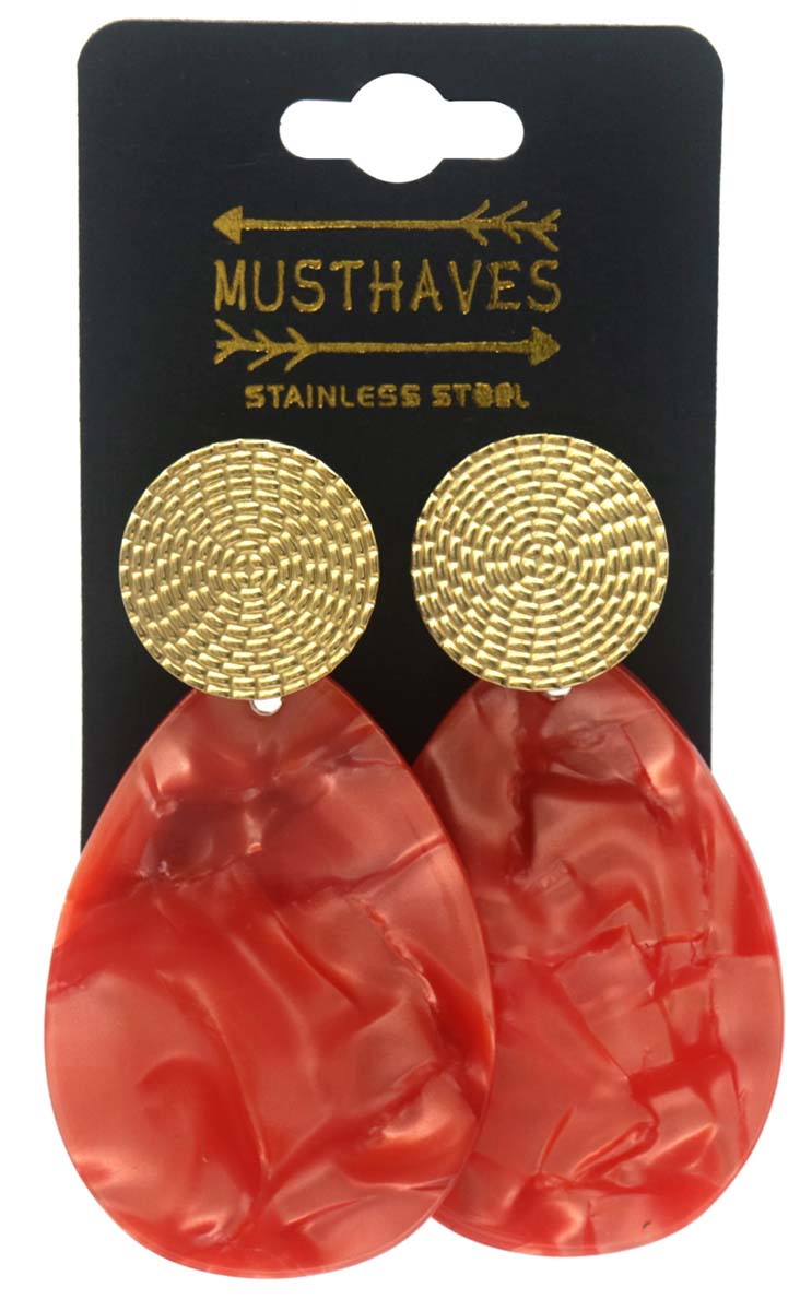 Product information "D-E17.5 E221-536 No. 2 S. Steel Earrings 6.5x3.5cm Red"