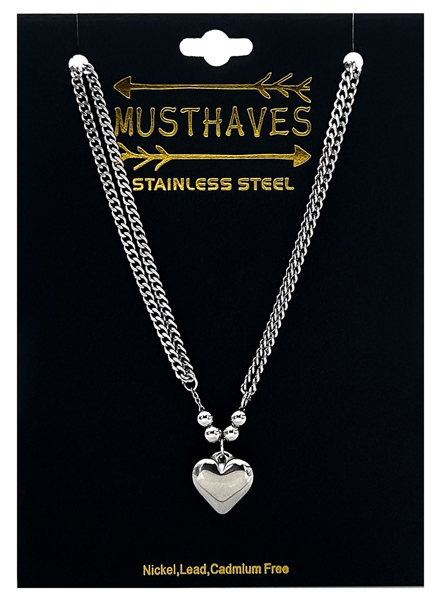 D-F7.3 N1131-002S S. Steel Layered Necklace Heart 40-45cm