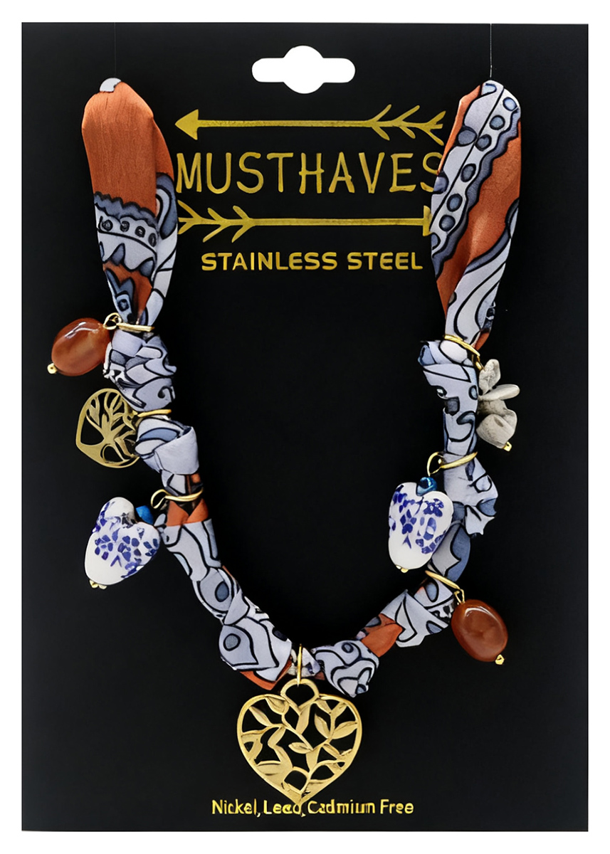 E-A9.1 N098-012 Fabric Necklace S. Steel Charms 40-45cm