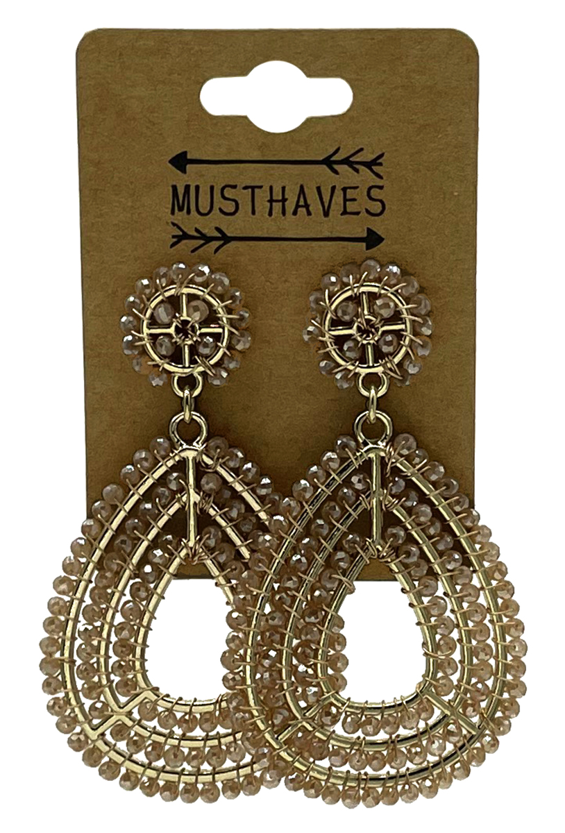 A-F10.1 E007-001 Earrings Faceted Glass Beads 4.5x3.5cm Black