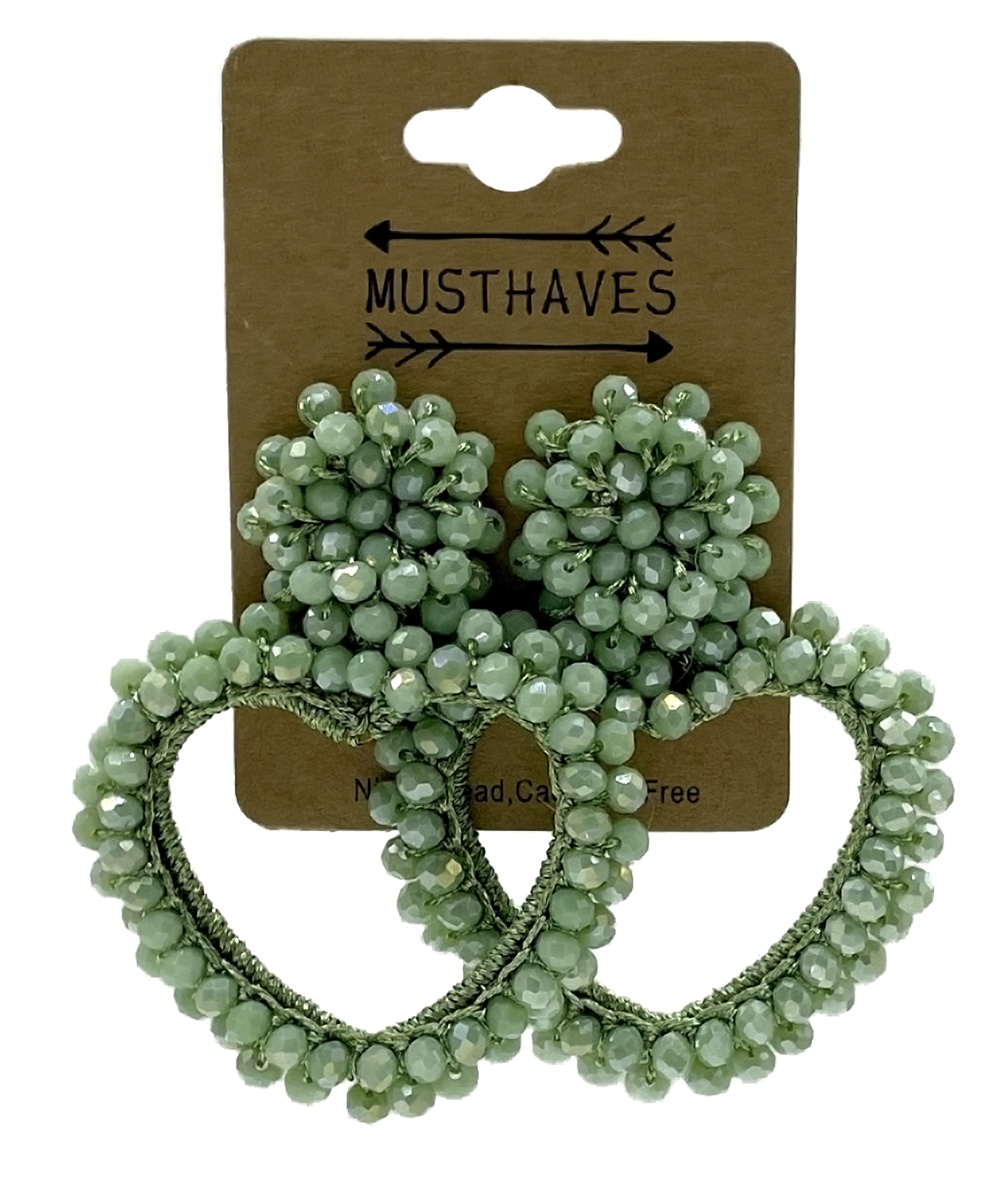 E-B20.1 E2591-136-4 Earrings Faceted Glass Beads Heart 6x4.5cm Green