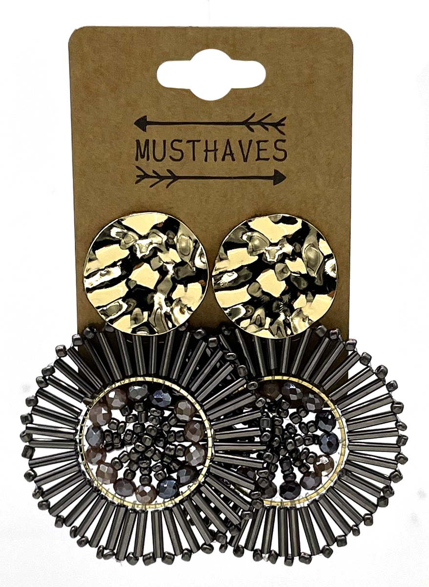 A-F10.1 E007-001 Earrings Faceted Glass Beads 4.5x3.5cm Black