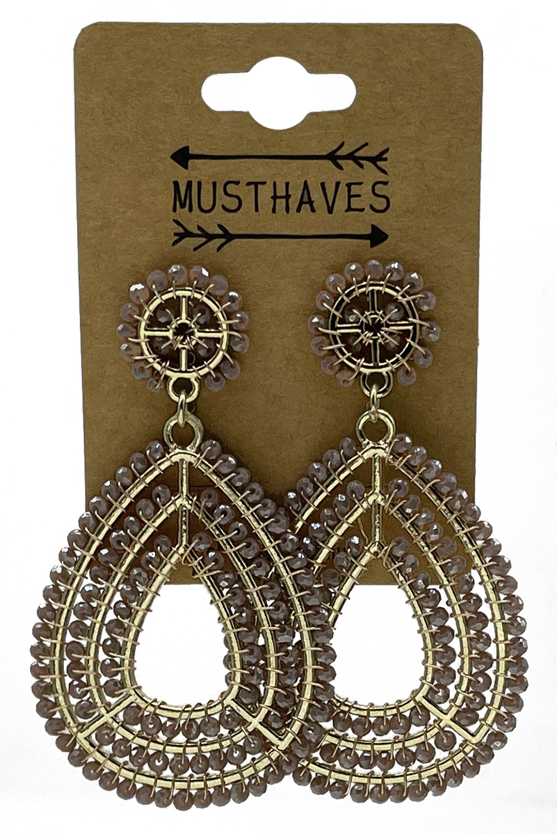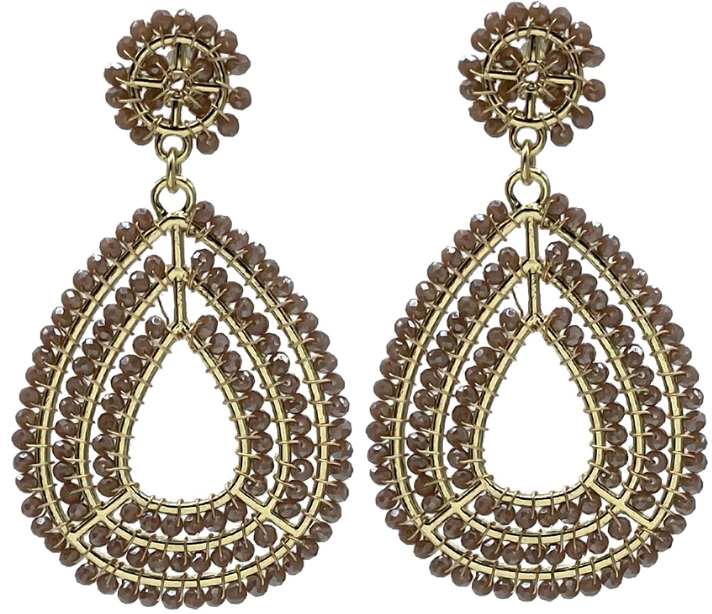 E-C18.4 E2591-142-1 Earrings Faceted Glass Beads Heart 6.5x3.5cm Brown