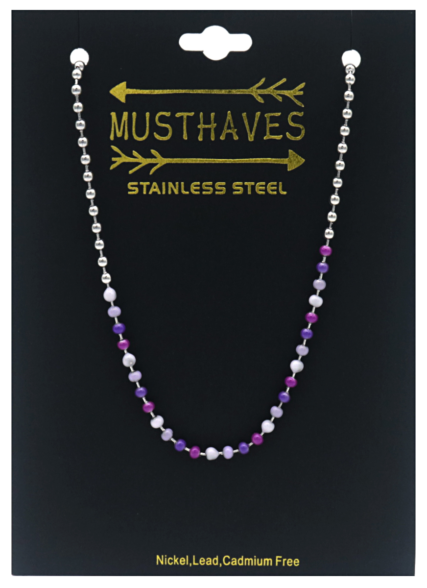 E-C8.3 N835-020S S. Steel Necklace Stones Purple