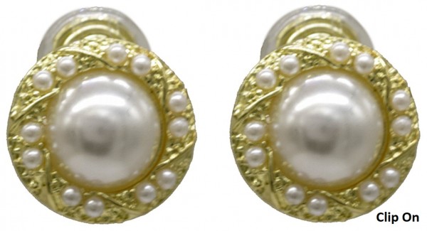 E-E19.2 E1667-037G Clip On Earrings Pearl 1.5cm