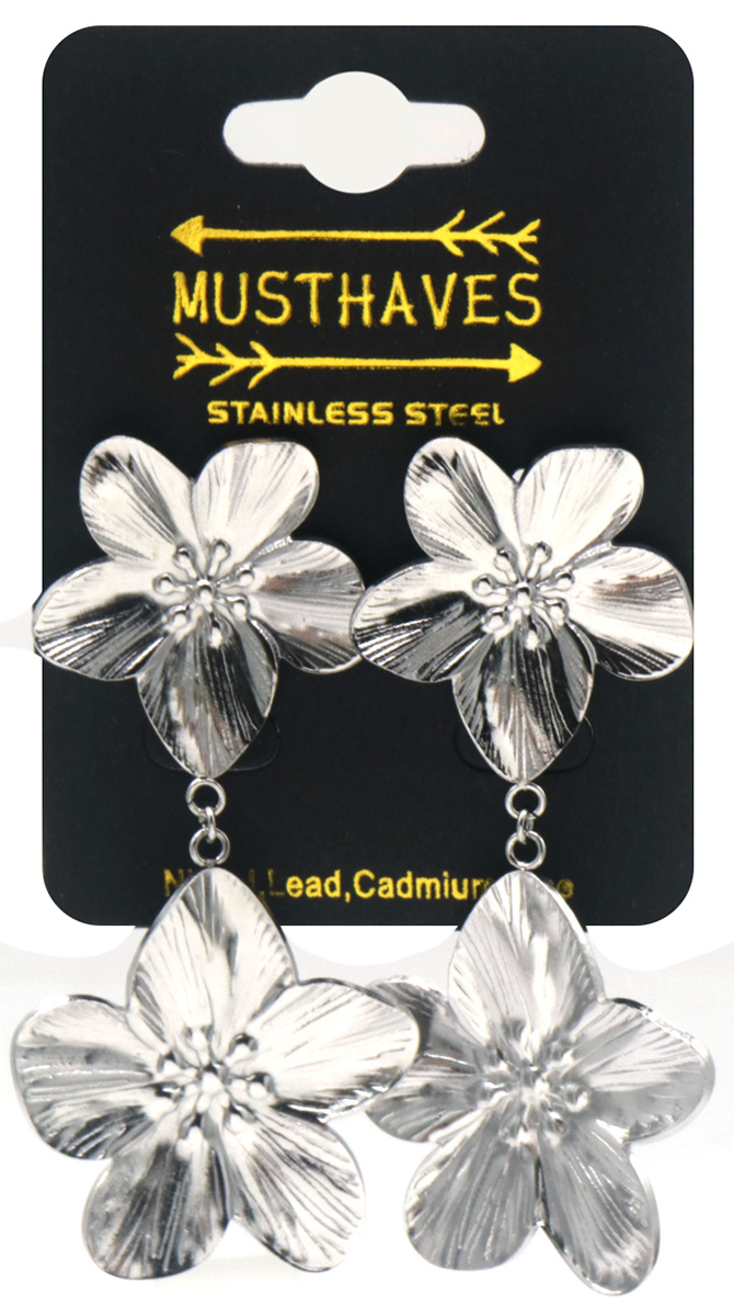 E-F17.1 E2583-076S S. Steel Earrings Flowers 6cm