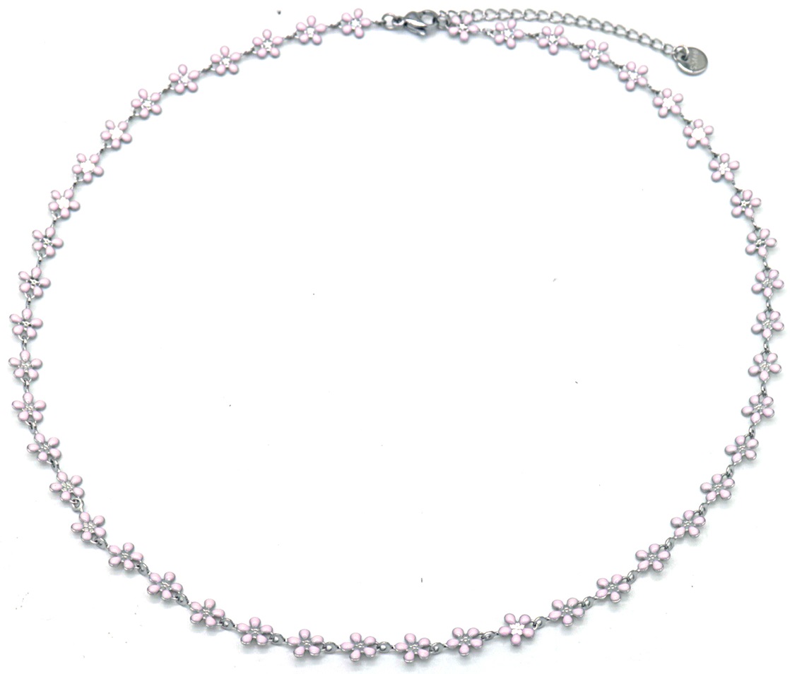 E-F8.1 N835-024S S. Steel Necklace Flowers Pink