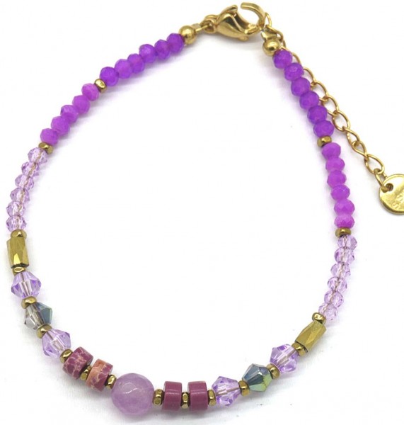 E-B22.2 B089-030G S. Steel Bracelet Clovers Crystals