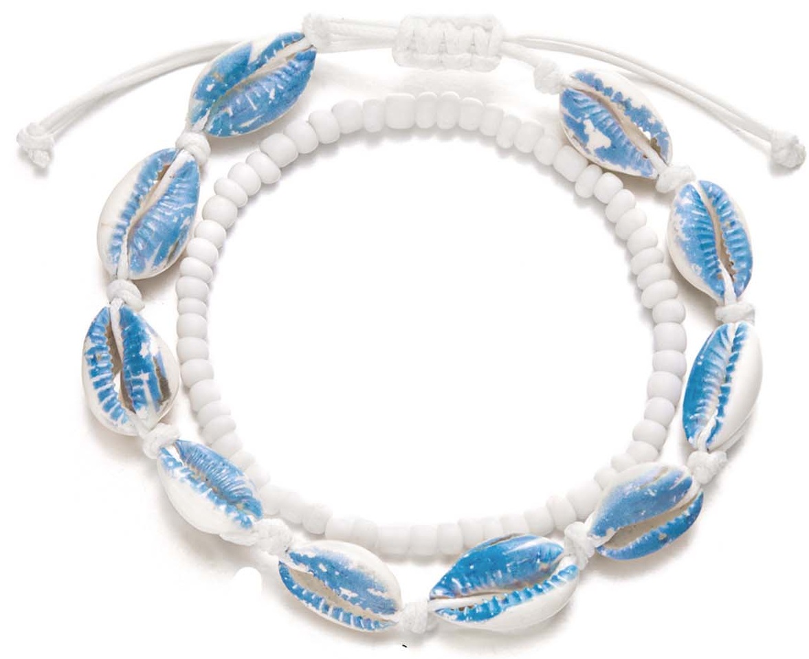 Introducing the F-B2.3 ANK2540-001-2 Anklet Set, a stunning accessory that beautifully combines elegance and beachy charm. This exquisite anklet set features a delightful arrangement of white and blue shells, evoking the serene essence of coastal living.