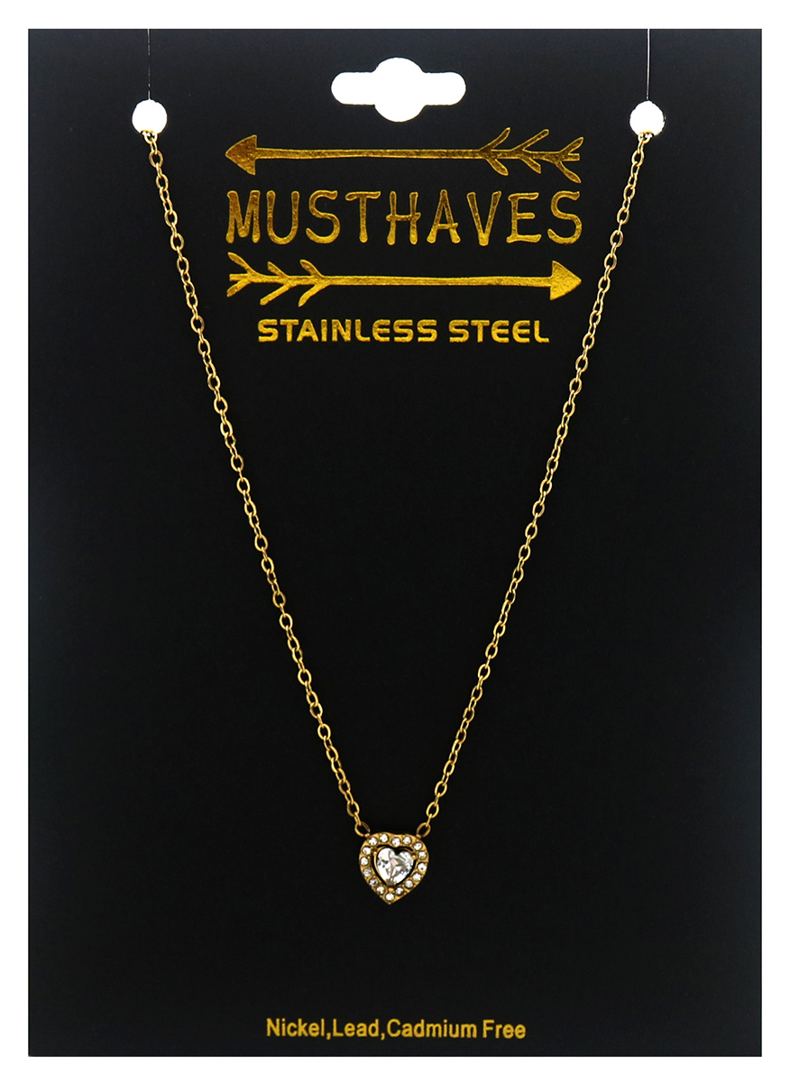 F-B8.3 N2591-036G S. Steel Necklace Crystals Heart 40-45cm