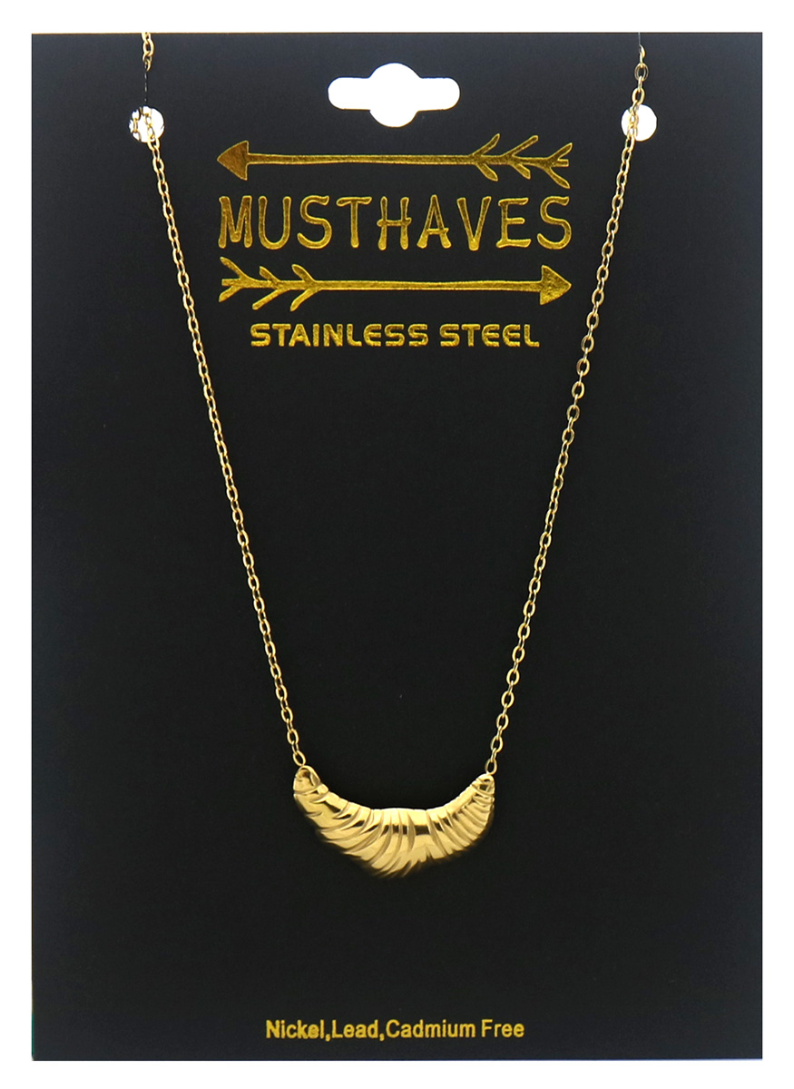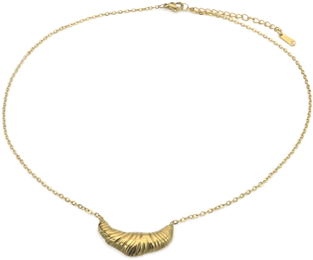 Introducing the F-C9.2 N2591-017G Stainless Steel Necklace, a stunning piece that effortlessly combines elegance and contemporary style. This exquisite necklace features a unique croissant design, adding a touch of sophistication to any outfit. Crafted from high-quality stainless steel, it is not only durable but also resistant to tarnishing, ensuring it retains its shine for years to come.