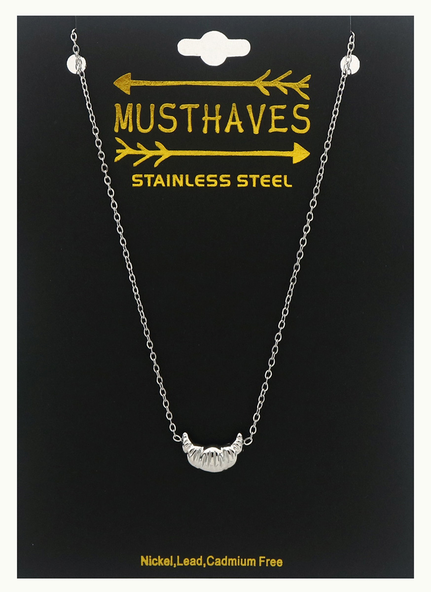Introducing the F-D20.2 N2591-001S Stainless Steel Necklace, a stunning piece that effortlessly combines elegance and contemporary design. Crafted from high-quality stainless steel, this necklace features a unique croissant-shaped pendant that adds a touch of sophistication to any outfit.