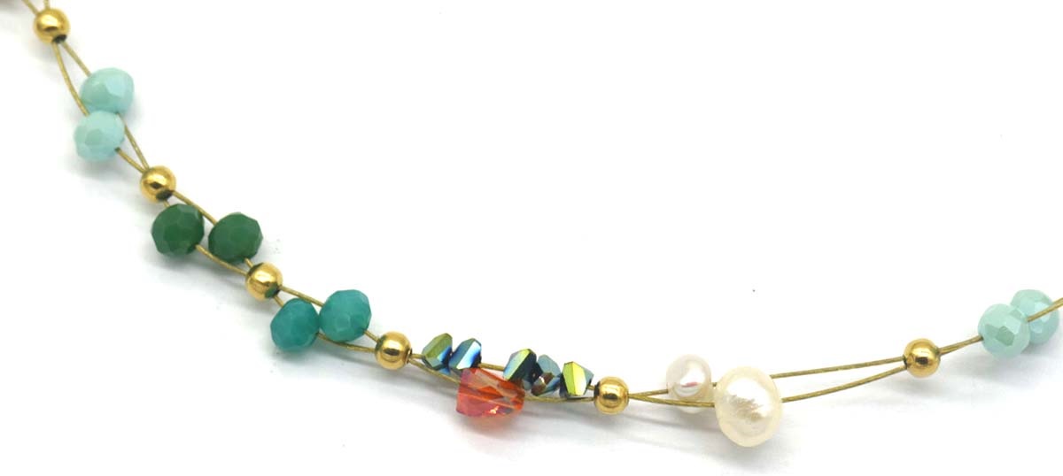 F-E18.2 NBE221-001 No. 6 S. Steel Necklace Pearls Green
