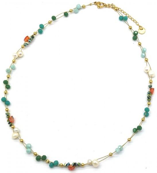Product information "F-E18.2 NBE221-001 No. 6 S. Steel Necklace Pearls Green"