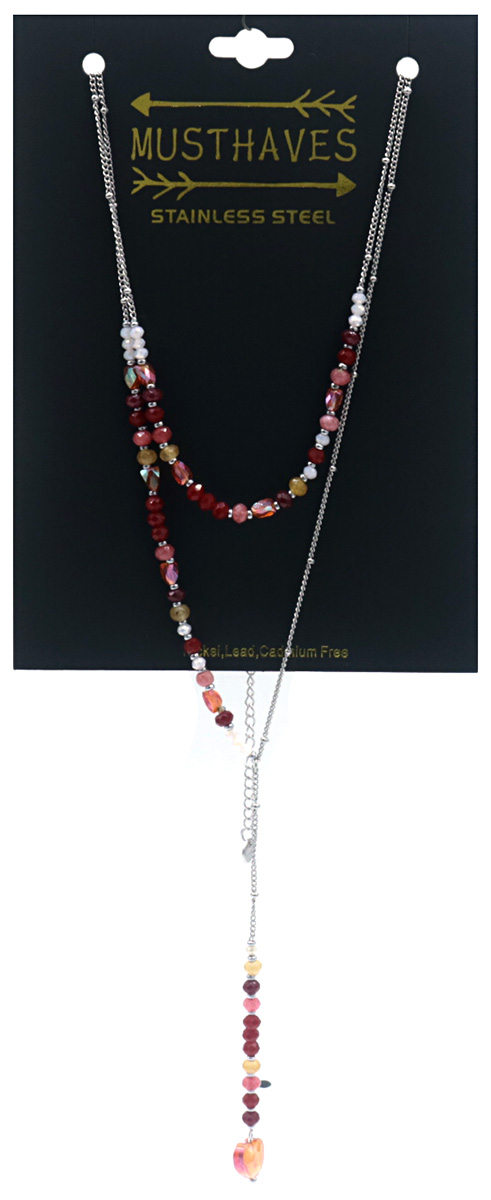F-F22.3 N221-323S No. 3 S. Steel Necklace Stones Red