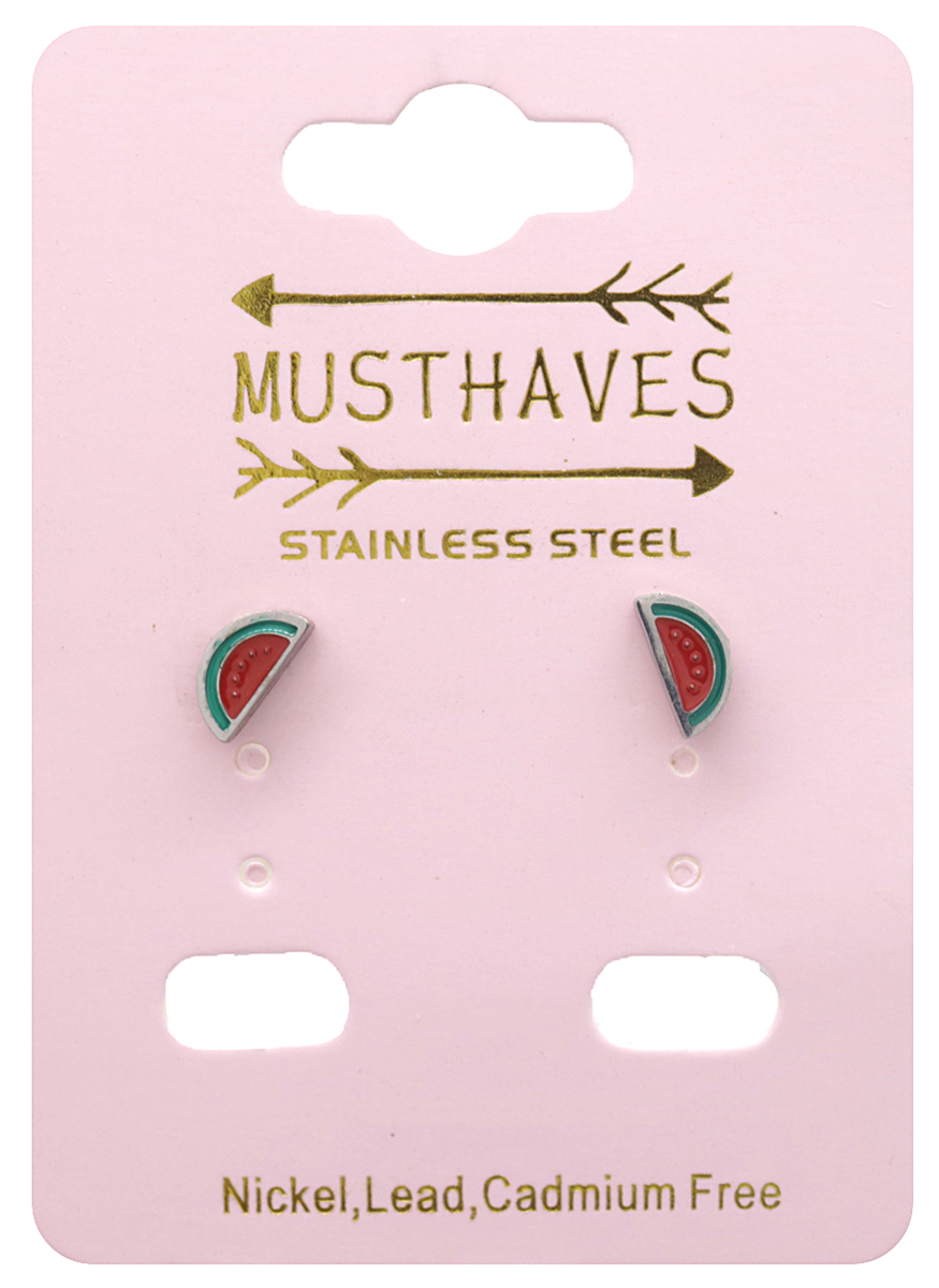 G-B17.5 E38-001S S. Steel Earrings for Kids Watermelon 8mm