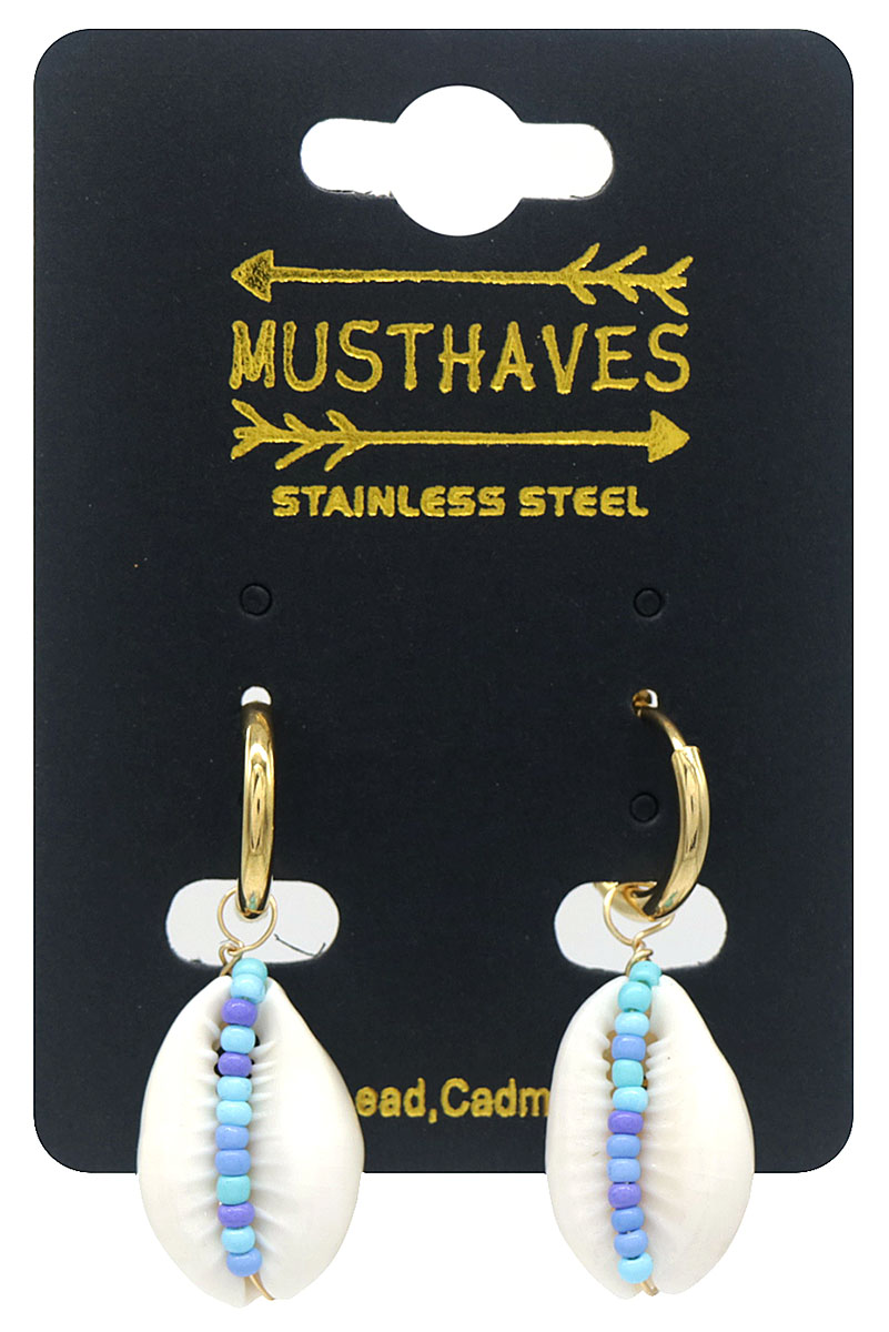 G-B20.3 E221-562-4 S. Steel Earrings Shell 3.5cm Blue